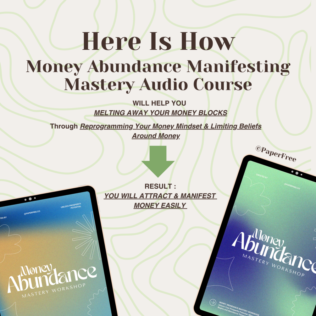 Here Is HOW Money Abundance Manifesting Mastery Audio Course By PaperFree Will Help You Melt Away Your Money Blocks, through reprogramming Your Money Mindset & Limiting Beliefs Around Money TO ➡️ Producing Desired Results YOU WILL ATTRACT & MANIFEST MONEY EASILY 💸