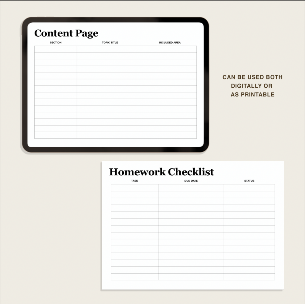 Digital Content & Homework Checklist For GoodNotes / Notability / Printables PDF
