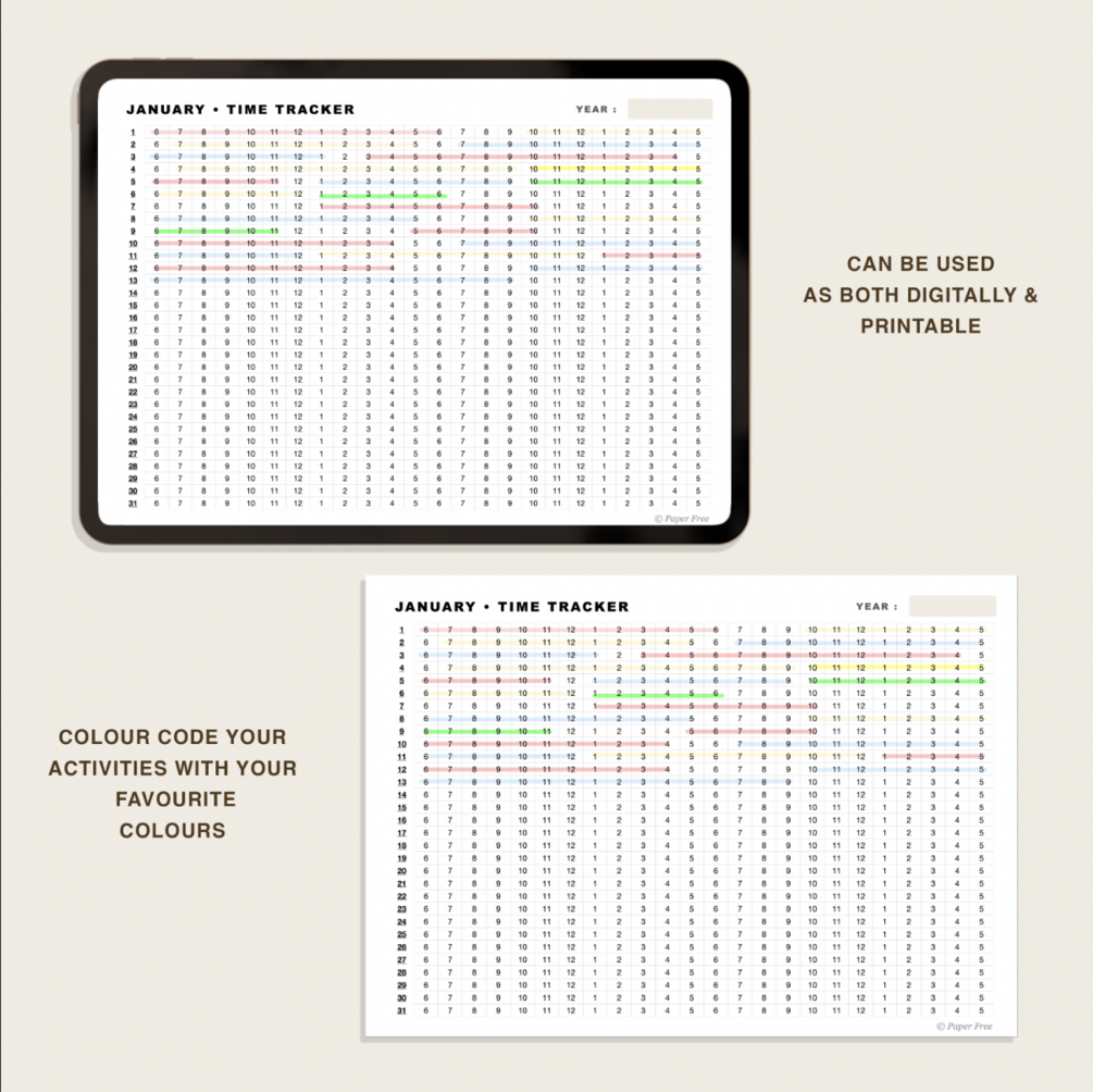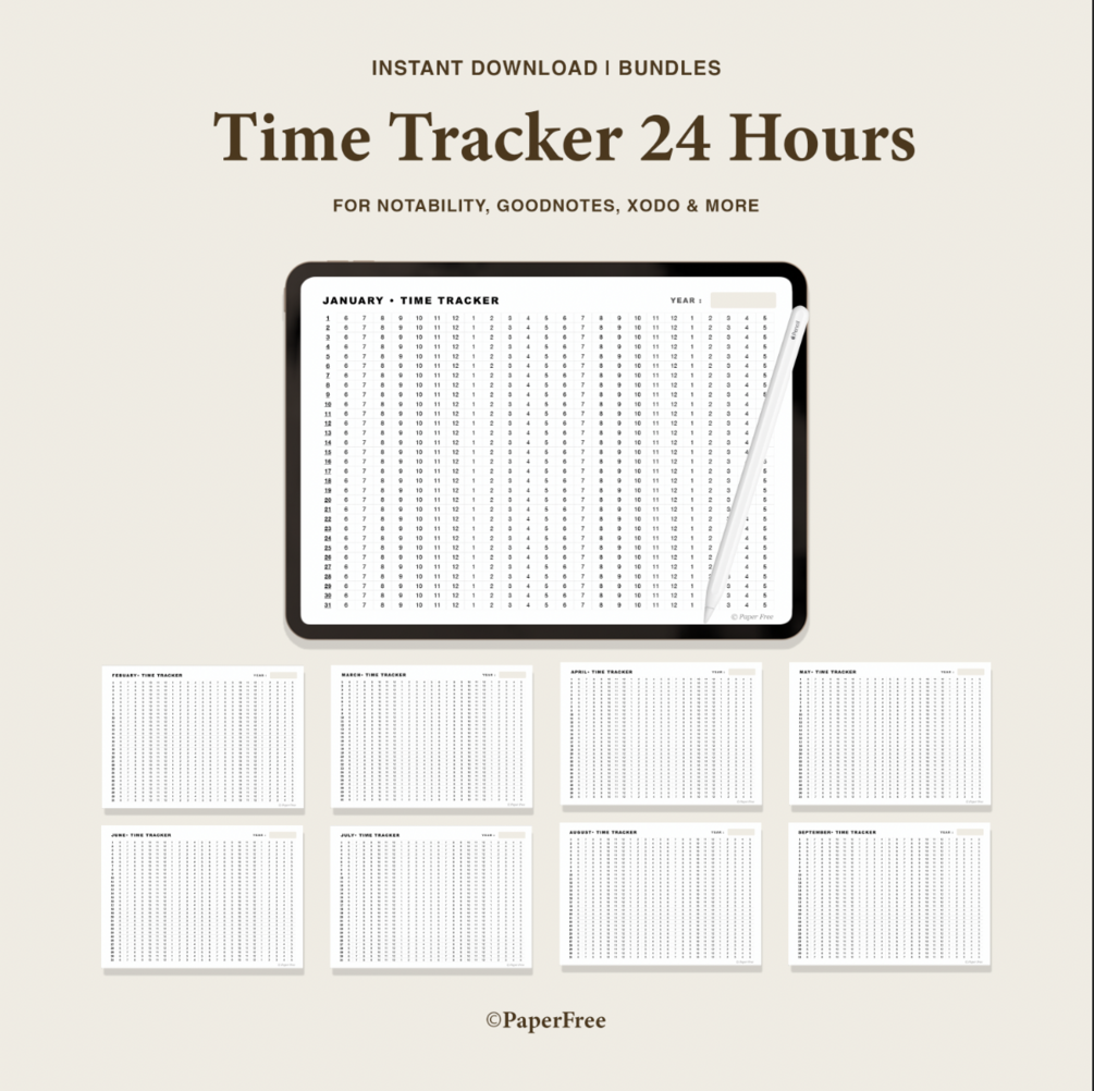 Digital Time Tracker 24 Hours For GoodNotes / Notability / Printables PDF