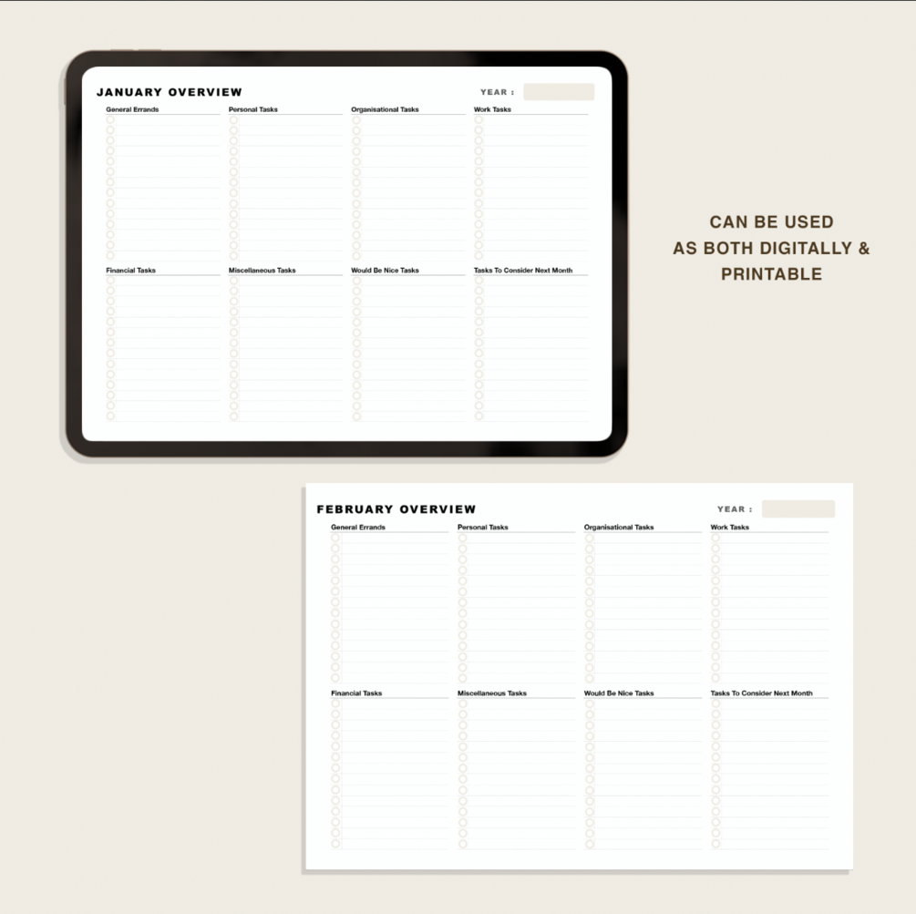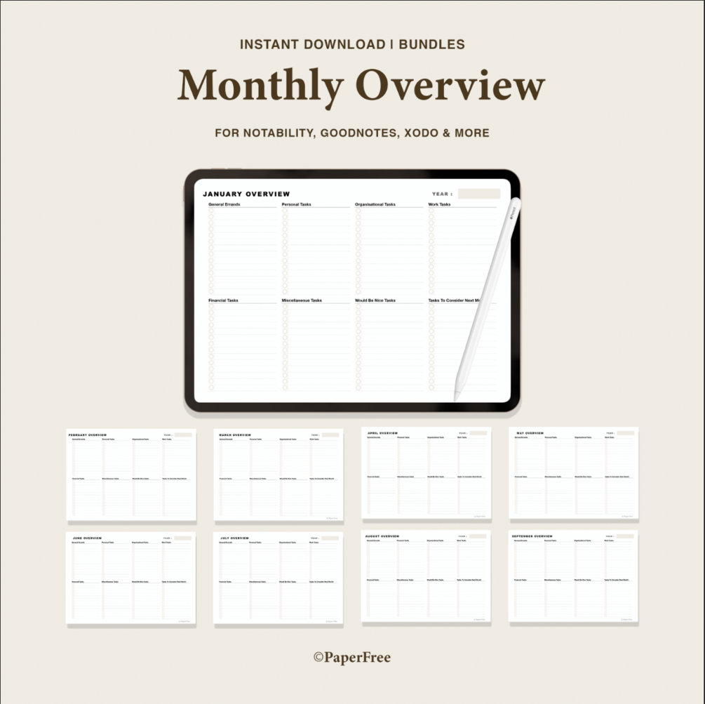 Digital Monthly Overview Bundle For GoodNotes / Notability / Printables PDF