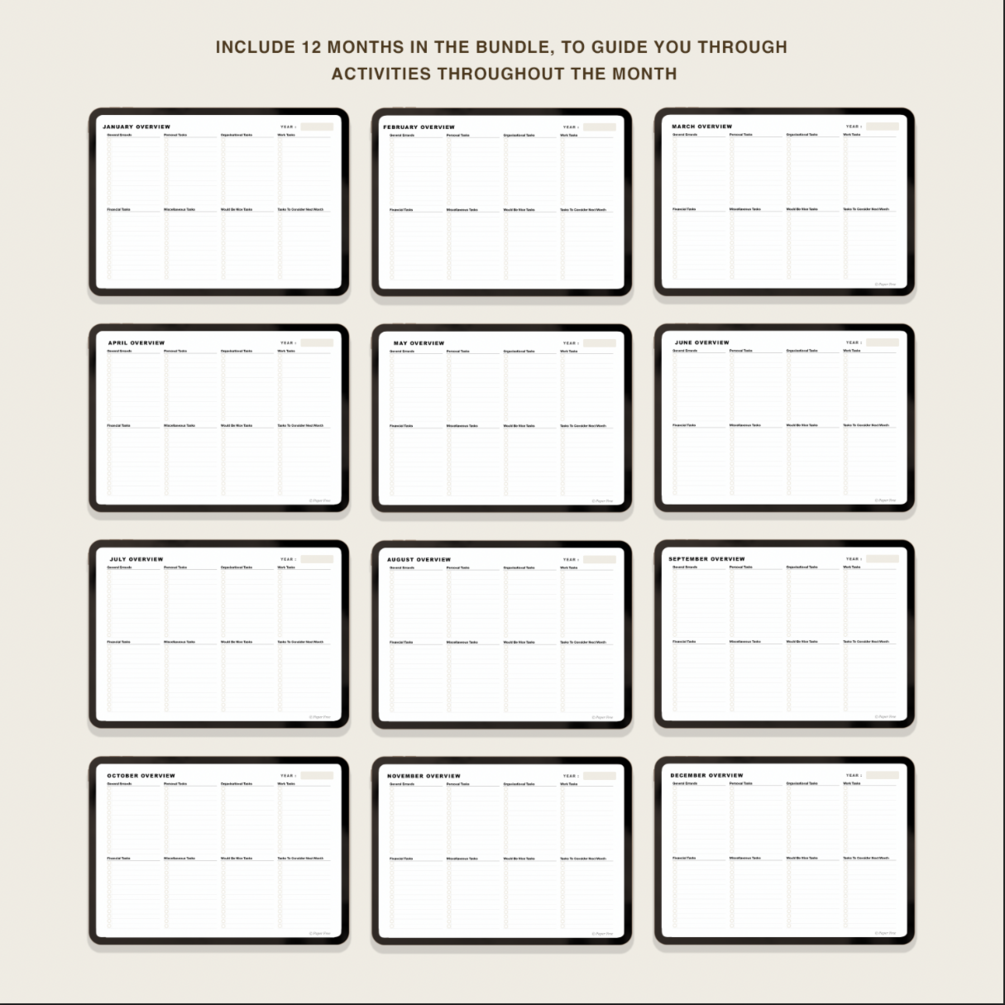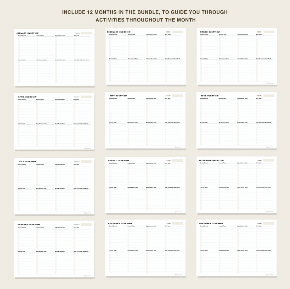 Organise the key tasks of each month with these handy breakdown sheets.This is an instant download - there is no physical product. The files become available to download upon purchase.