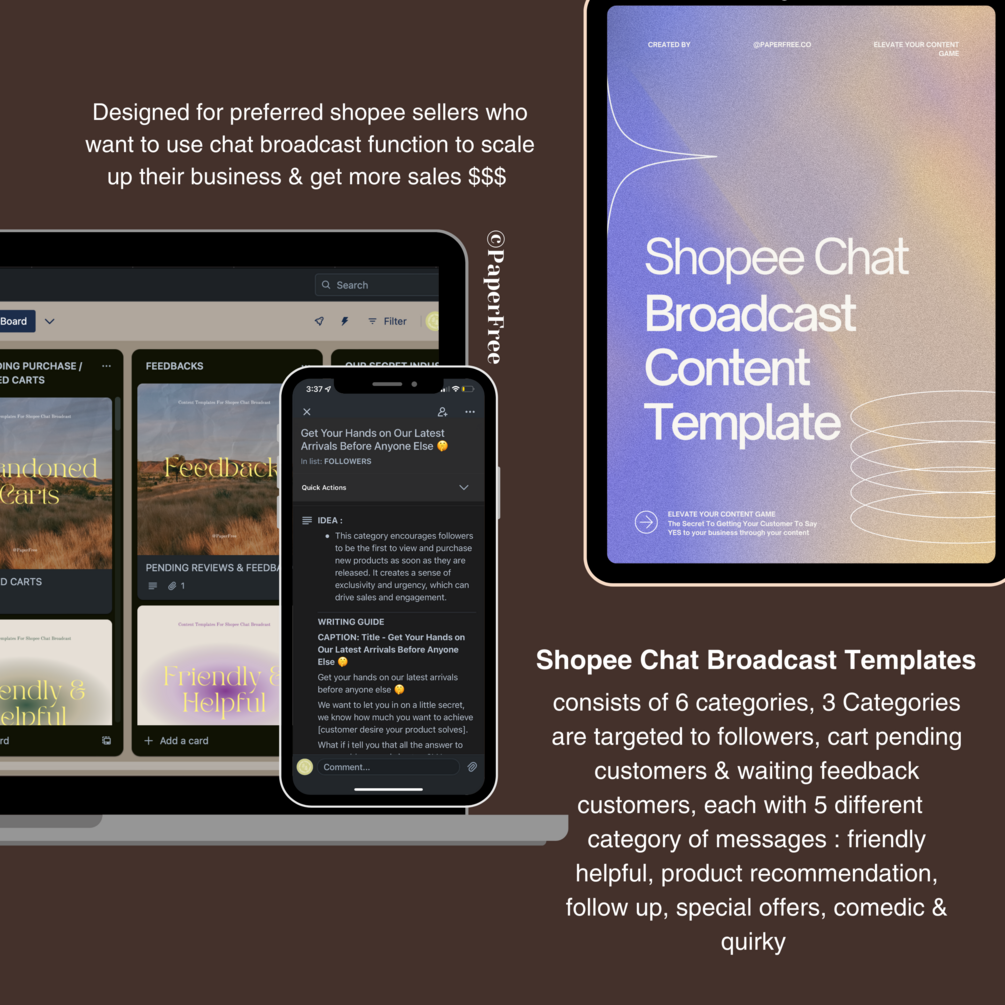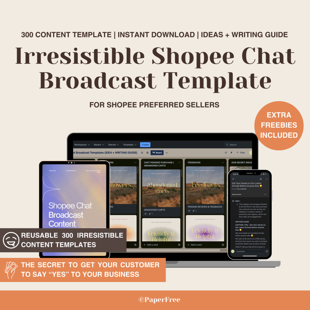300 Irresistible Shopee Chat Broadcast Templates (IDEA + WRITING GUIDE) By Paper Free 🌱