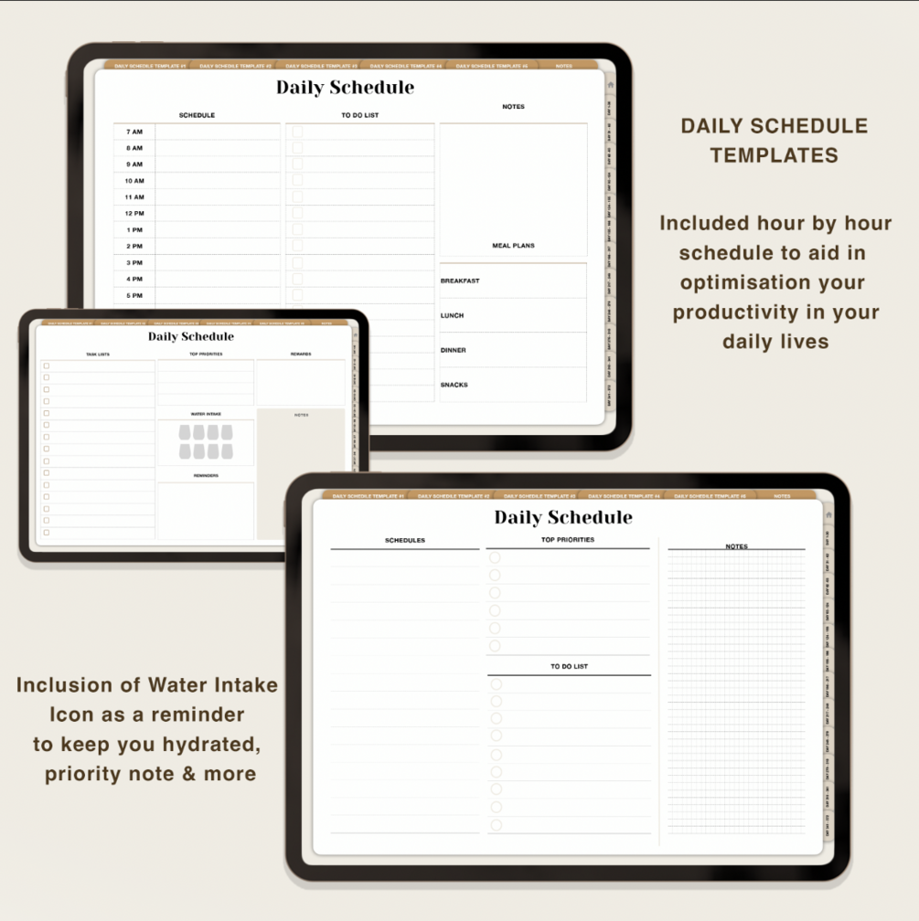 The All-in-one digital planner has been carefully designed to maximize productivity, aid in achieving all the goals that you set for yourself, and ultimately in helping you find balance in your life. This particularly dated planner has a creative yet functional design that is backed by a very extensive and smooth network of hyperlinks and buttons to make sure that the user experience is unrivalled.